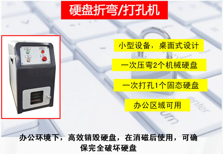 在消磁后使用硬盤折彎機(jī),可以機(jī)械性破壞硬盤,損壞讀寫頭和軸承,使數(shù)據(jù)無法被恢復(fù)。
